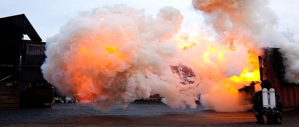 It produces an exothermic reaction, which generates a strong production of heat (up to 1000°C in certain cases) and releases a high production of flammable gases such as hydrogen, as well as those of toxic fumes.
